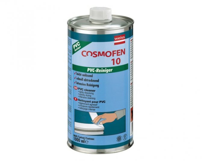 - Cosmofen. Un solvant spécial, qui, selon l'agressivité, a un numéro 5, 10 ou 20. Le plus fort est le numéro 5, peut dissoudre les liants plastiques. Prenez le numéro 10 ou 20 et suivez les instructions.