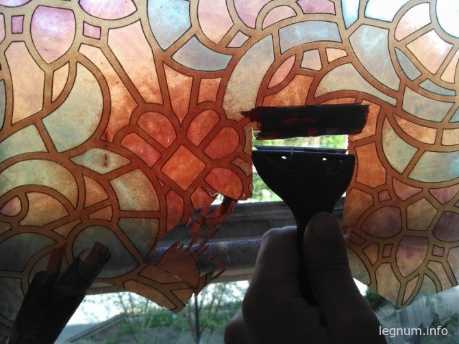 N'utilisez pas de couteau ou de grattoir pour gratter le film, peu importe combien il adhère. Si vous utilisez des outils de manière inefficace, vous pouvez rayer les raccords et le verre en PVC, les fenêtres coûteuses auront l'air bâclées. N'utilisez pas de brosse métallique, ses dents risquent de laisser des traces.