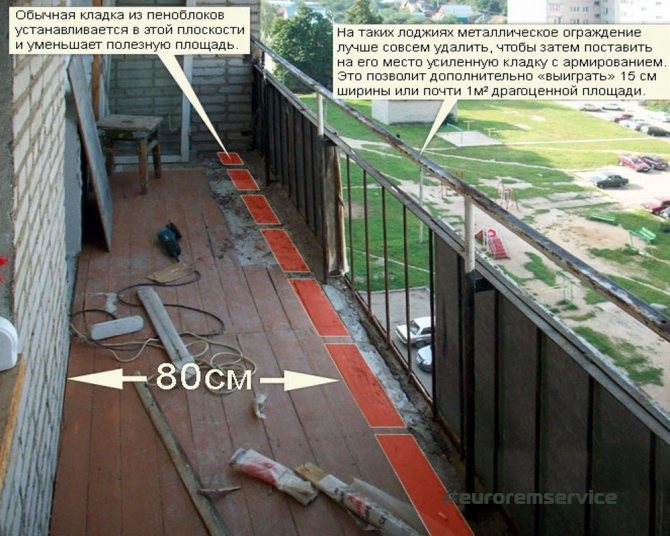 Pour éliminer la dalle, procédez après avoir démonté tous les autres éléments sur le balcon. Schéma des travaux de démontage de la dalle et du parapet:
