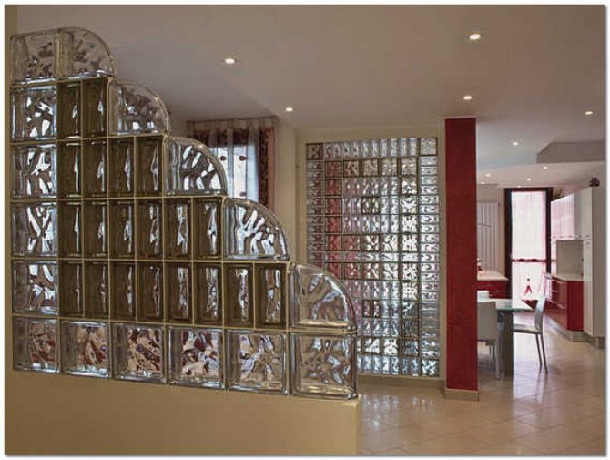 La construction moderne et les matériaux décoratifs sous forme de blocs de verre offrent de nombreuses possibilités de décoration intérieure. En utilisant ces «briques» en verre, vous pouvez mettre en œuvre les solutions les plus inattendues pour la décoration des pièces.