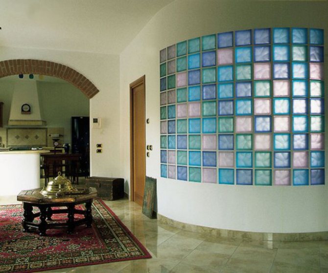Les blocs translucides laissent entrer suffisamment de lumière pour ne pas utiliser un éclairage de base et économiser de l'électricité.Mais même les produits colorés, en raison de leur translucidité, ne créent pas la sensation d'un espace fermé.