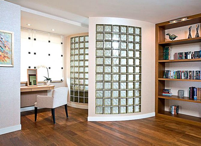 4. Les blocs de verre sont également un matériau économe en chaleur. Ils peuvent vitrer de grandes ouvertures de fenêtres - et la pièce sera chaude (tout comme avec les fenêtres à double vitrage en plastique modernes).