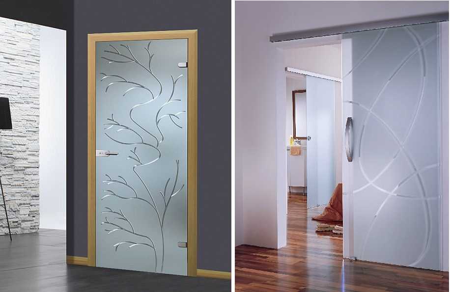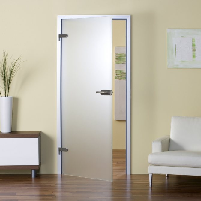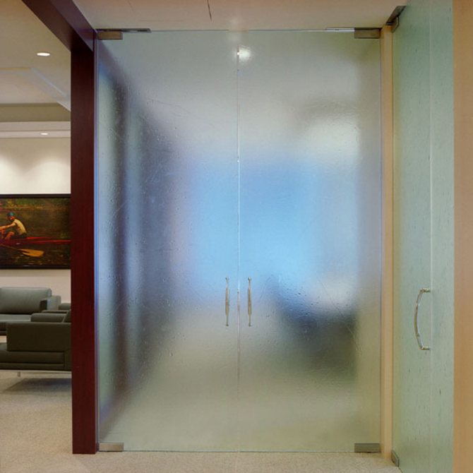 Le vantail de la porte pour les intérieurs domestiques et publics est en verre trempé (7 fois plus résistant que d'habitude) ou en triplex. Ce sont deux ou plusieurs feuilles collées ensemble avec un film (entre elles, vous pouvez poser du tissu, appliquer une impression UV, etc.). Cette conception devient encore plus résistante aux chocs - il est extrêmement problématique de la casser, mais si cela se produit, les fragments des deux côtés pendent sur le film et ont des bords émoussés.