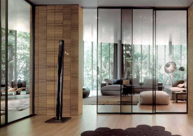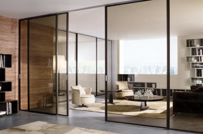 Avant de placer des portes coulissantes, il est impératif de prendre en compte les nuances suivantes: dans la pièce, vous devez avoir une place pour que les volets puissent se cacher; calculer correctement la taille de l'ouverture; renforcer les ouvertures, car le verre lui-même est très lourd.
