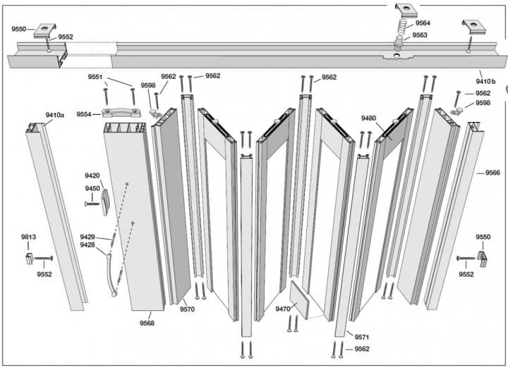 - Installation de panneaux latéraux et charnières, suspension de porte. Les volets installés doivent s'articuler vers l'extérieur sur le côté gauche ou droit.