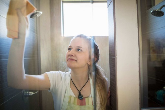 Son entretien est simple : dans les locaux d'habitation, la surface est essuyée avec un nettoyant pour vitres et un chiffon doux au fur et à mesure qu'elle se salit. Si vous décidez d'installer une porte vitrée dans la douche, commandez qu'elle soit traitée avec des composés hydrofuges afin que le calcaire de l'eau du robinet ne se dépose pas sur le verre et n'ait pas à être lavé après chaque utilisation des procédures d'eau.