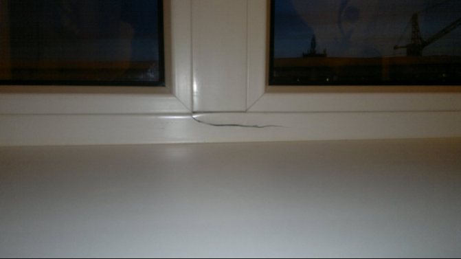 Si des fenêtres en plastique ont été installées dans une maison en bois, alors lorsqu'elles rétrécissent ou que le mur est incliné, un espace ou un espace apparaît entre elle et l'unité en verre. Ici, nous parlons déjà de violations de la technologie d'installation de la fenêtre en plastique elle-même.
