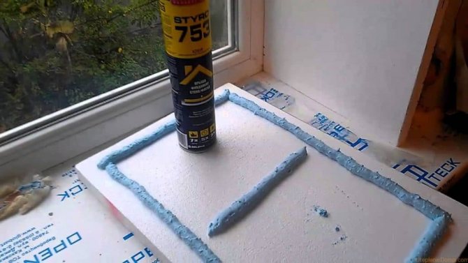 - Selon les dimensions spécifiques, découpez des fragments de mousse et collez-les à la surface de la pente en le blottissant fermement. Pour plus de fiabilité, vous pouvez utiliser des chevilles.