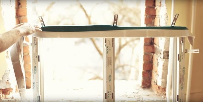Les parties du bloc adjacentes au mur doivent être collées avec PSUL. Un ruban pare-vapeur est attaché le long du périmètre de la fenêtre. Il doit faire saillie dans la pièce.