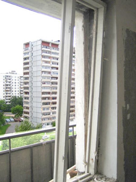 Les châssis sont retirés de la fenêtre. Démontez les cadres de fenêtres. Si nécessaire, démontez (défoncez) les pistes.