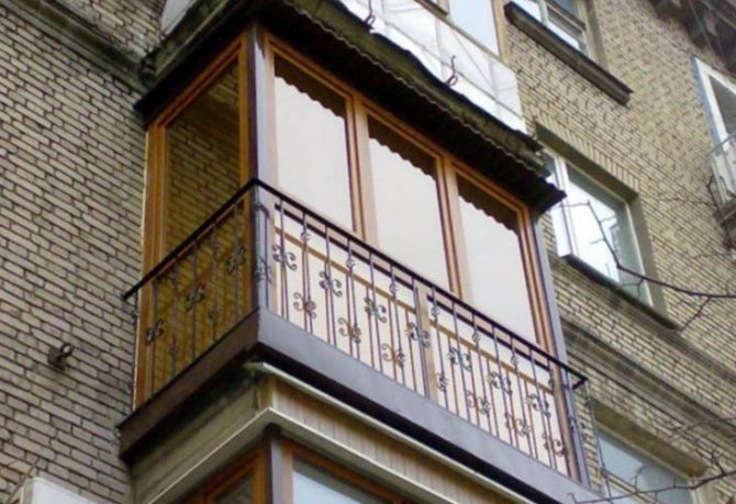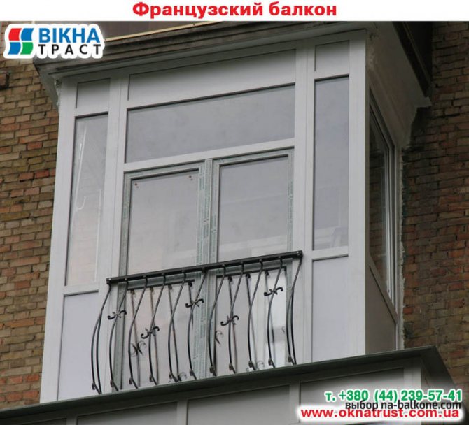 Un tel balcon ne fait pas saillie au-delà de la façade et la clôture décorative est fixée soit dans la porte, soit au mur extérieur du bâtiment. - Avec une petite plate-forme extérieure.