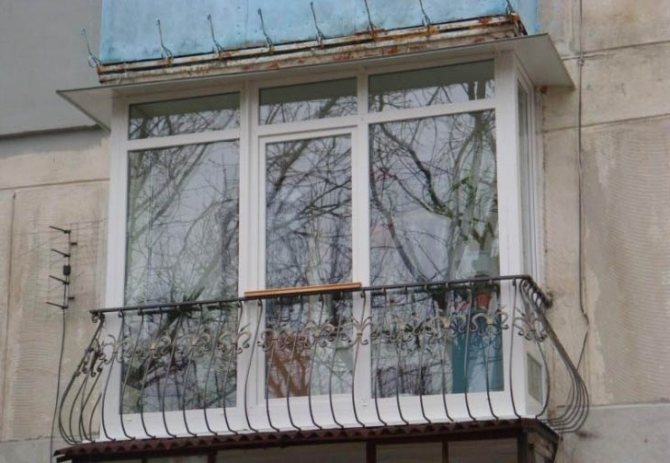 - Avec plateforme très petit sous la forme d'une saillie en béton du mur, qui est soutenue par le bas par une corniche. Une personne peut déjà, quoique avec difficulté, y devenir. Le gril est installé le long du périmètre du balcon.