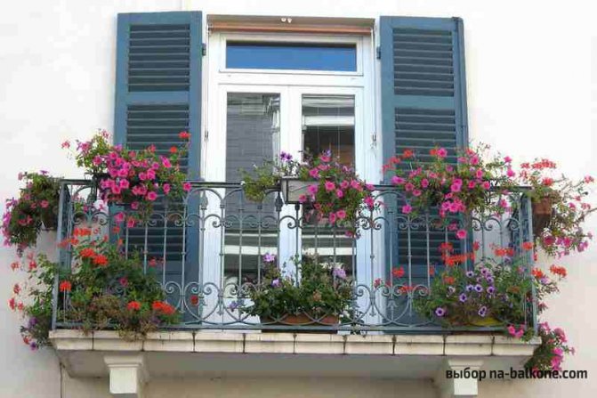 Les balcons sur les fenêtres pour les fleurs sont de taille compacte, ne dépassent pratiquement pas les limites de la façade du bâtiment. Par conséquent, ils sont souvent confondus avec les balcons français. Mais il y a différences.