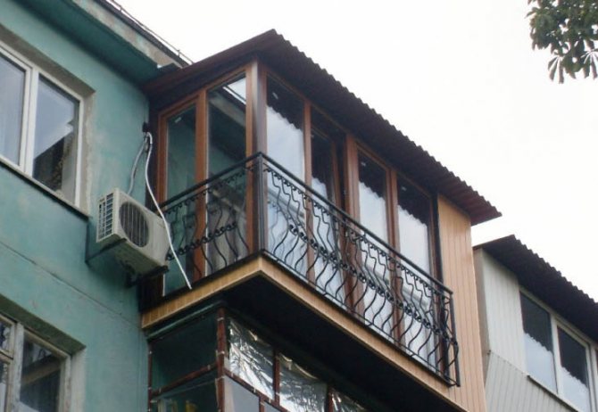 Sur un tel balcon, vous pouvez prendre une tasse de thé ou placer une petite serre avec des fleurs naturelles ou décoratives. - Avec vitrage extérieur.