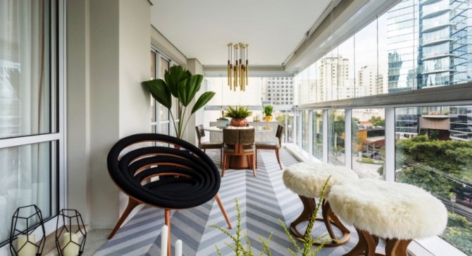 Dans les endroits avec une charge de vent accrue et sur les derniers étages des gratte-ciel modernes, il est préférable de ne pas placer une feuille de verre solide, mais divisée en sections, cela aidera à éviter le vent. Un vitrage sans cadre coûteux a l'air particulièrement aéré, mais ce n'est pas très pratique.