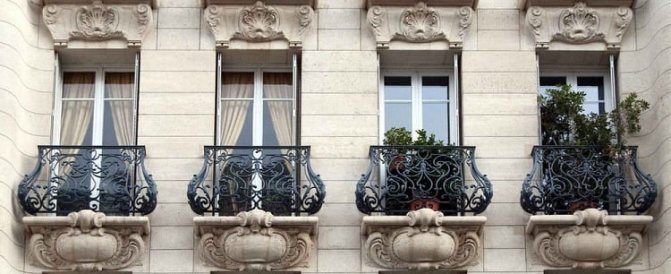 Le balcon français dans les rues de nos villes peut être identifié sans équivoque. Ses garde-corps sont installés directement dans l'ouverture. Il s'avère qu'il a ouvert la porte et juste là - une clôture, qui est souvent faite dans le style romain sous la forme de balustres ou de métal forgé.