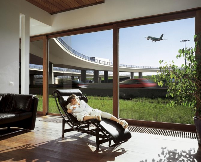 Cette variété semble assez impressionnante et est activement utilisée dans la construction d'hôtels chers. Les grands verres peuvent remplacer des murs entiers ou être montés en blocs, comme le montre la photo.