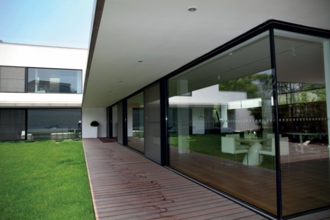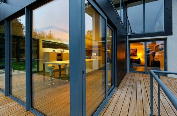 Avec le développement moderne des technologies de construction, non seulement le vitrage profilé des façades des centres d'affaires, des grands centres commerciaux ou des bâtiments publics est devenu possible. Des vitraux en aluminium spectaculaires sont de plus en plus proposés par les architectes pour la construction privée - maisons de campagne, chalets d'été, chalets. Ils sont efficaces dans la construction rapide de maisons à ossature qui, avec des fondations bien établies, peuvent être achevées pendant une saison.