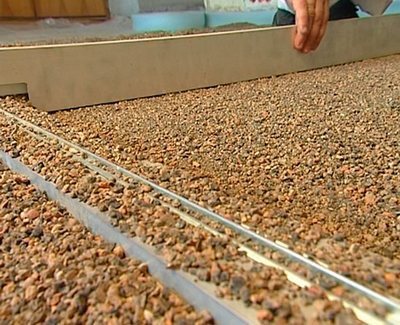 - Lorsque la chape est complètement terminée, on la laisse sécher, mais pour qu'elle reste solide, le béton est arrosé quotidiennement avec de l'eau.