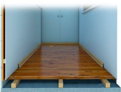 - Tout d'abord, des bûches sont installées le long des murs, à une distance de 80 à 100 mm d'eux, car il est impératif de poser un matériau isolant entre elles.