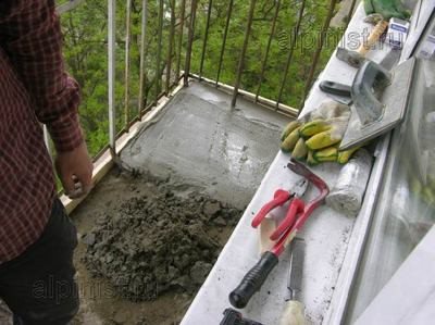 Le coffrage est retiré au jour 3, les bords irréguliers sont recouverts d'un mortier de ciment épais. Vous pouvez marcher sur le sol en une semaine, mais le séchage final de la chape dépend des conditions météorologiques. Mais, juste au cas où, ne mettez pas d'objets lourds sur le balcon.