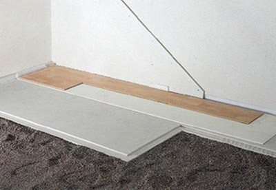 - Si la deuxième couche d'argile expansée doit être posée, le revêtement de sol intermédiaire en panneaux de fibres de gypse doit être relié au mur avec un scellant.Il ne permettra pas aux particules d'argile expansée de pénétrer dans le joint entre le mur et les panneaux.