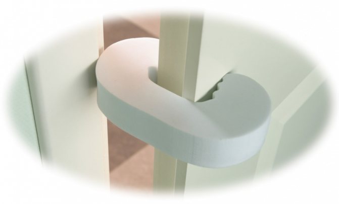 - Plus fonctionnels sont des dispositifs tels qu'un bouchon, qui est attaché au boîtier supérieur. En position dépliée, cela n'empêche pas le produit de se fermer, mais si vous le faites pivoter de 90 degrés vers le bas, cela créera un obstacle pour une fermeture complète. Vous pouvez être sûr que même avec un courant d'air ou des farces enfantines, il y aura toujours un espace entre la porte et la boîte, ce qui ne permettra pas au bébé de se pincer la main.
