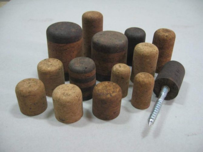 - Bois... Prenez un petit bloc, de préférence rond en coupe transversale. Mesurez la distance requise. Vous pouvez fabriquer un bouchon d'une hauteur de 3 à 5 cm ou l'augmenter à 10 cm. Si vous utilisez un bois propre, vous devez le traiter immédiatement avec une tache de la teinte souhaitée et l'ouvrir avec du vernis. Dans ce cas, veuillez noter que toute la surface de la pièce doit être soigneusement poncée. Ensuite, prenez une double vis autotaraudeuse ou une épingle à cheveux et vissez-la par l'arrière de l'extrémité. Pour l'installation, vous devez choisir un endroit sur le sol, percer un trou, insérer une cheville et y enfoncer un bouchon, en le tordant progressivement jusqu'au bout.