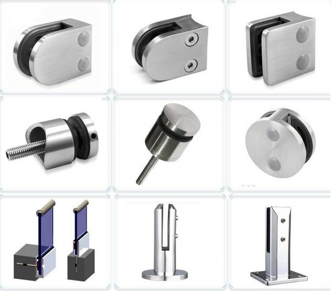 Pour fixer les modules de verre les uns aux autres, ainsi que pour les relier à d'autres matériaux, des éléments auxiliaires métalliques appelés raccords sont utilisés. Leur assortiment est tout simplement énorme et le nombre d'articles atteint plusieurs centaines. Il est à noter que pour l'installation d'une structure en verre, un certain ensemble de raccords est nécessaire, qui peut être sélectionné et formé sans aucune difficulté, car dans le catalogue d'une boutique en ligne d'entreprise, vous pouvez trouver un nombre incroyable d'articles de base.