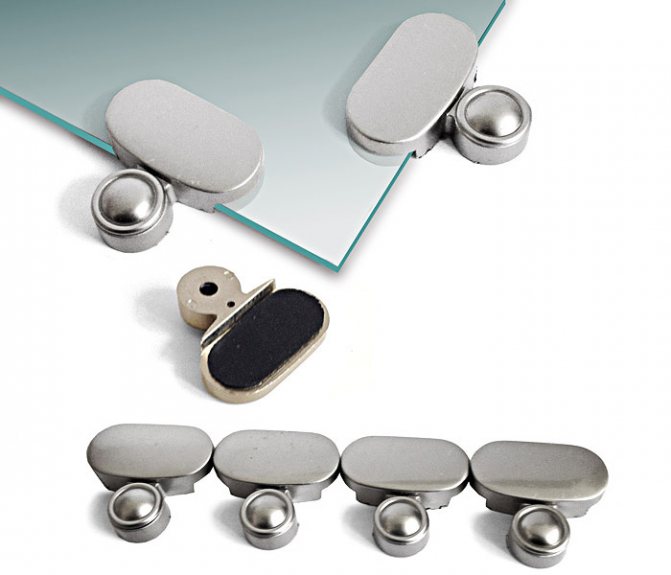Lors du choix des accessoires pour la fixation du verre, vous devez vous fier à l'apparence de l'objet lui-même, à son emplacement et à sa fonctionnalité.Si une attache est choisie pour installer un miroir ou une autre structure en verre dans la salle de bain, privilégiez les pièces en acier inoxydable (acier, zinc, laiton). Vous devez également faire attention à l'aspect décoratif. Ce détail doit s'intégrer parfaitement dans la conception du produit. Les attaches au verre doivent avoir une doublure de protection afin que lorsqu'il entre en contact avec la toile, il ne la déforme pas.