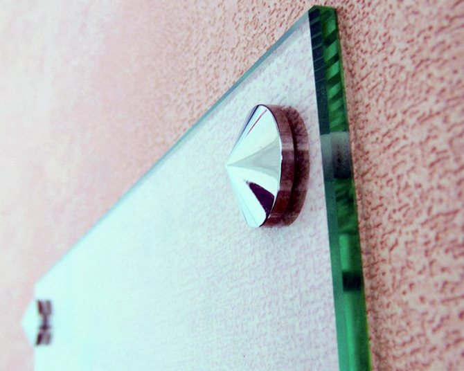 Pour effectuer l'installation et la fixation du verre à l'aide de perçage, des raccords sont utilisés, pour lesquels vous devez préparer un trou dans la toile. De telles attaches permettent l'installation d'éléments plus lourds ou de produits conçus pour une charge plus importante. Dans ce cas, il est également nécessaire de faire un trou encastré dans le mur pour une fixation fiable.