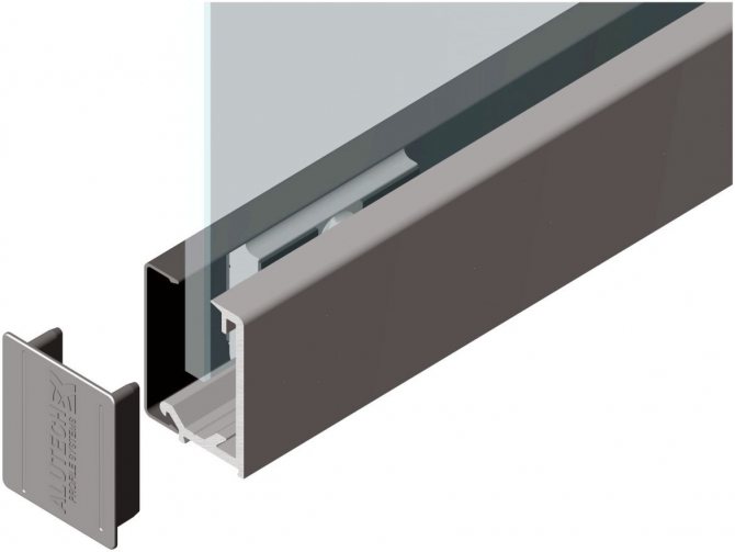 - Coupe - les feuilles de verre plates se déplacent sur des rouleaux le long des guides supérieur et inférieur. Le mécanisme à rouleaux de la cloison est monté le long du mur ou dans une «trousse à crayons» encastrée.