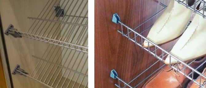 Fixation de l'étagère en treillis métallique car l'armoire est généralement offerte en ensemble. L'étagère elle-même est sciée pour s'adapter à la taille interne de la niche pour l'installation; des supports spéciaux sont installés sur les tiges longitudinales de chaque côté.