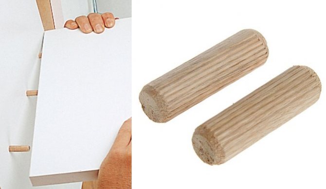 Le plus abordable, mais pas aussi populaire qu'auparavant, est une cheville de meuble. Il peut être en bois massif et en plastique. Pour une meilleure adhérence sur les surfaces latérales des chevilles, elles sont nervurées.