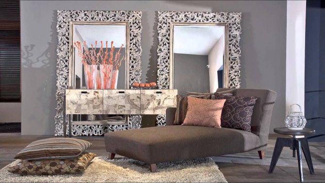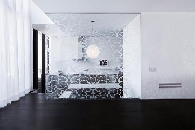 Des miroirs, des étagères en verre, des panneaux, des vitraux sous une forme ou une autre sont toujours présents dans la maison. Tous ces attributs de l'intérieur de la maison sont unis par une caractéristique: la fixation de ces plans fragiles aux murs.
