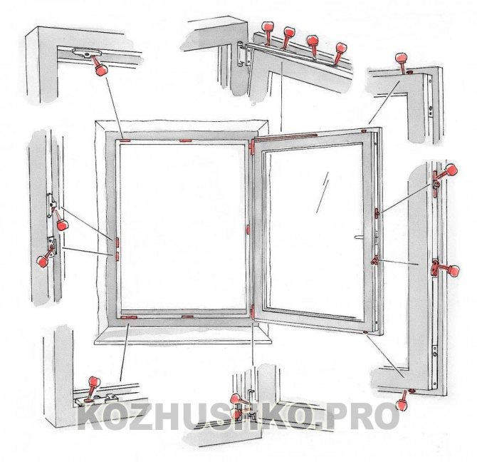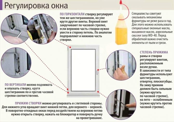 Les fabricants de produits de fenêtre ont prévu la fonction d'ajustement des fenêtres en plastique pour l'hiver, avec lesquelles vous pouvez presser fermement le châssis et le cadre l'un contre l'autre. Cependant, elle ne peut pas être réalisée immédiatement après la pose des structures, car cela réduirait l'étanchéité de la gomme de scellement et conduirait à une perte de son élasticité.
