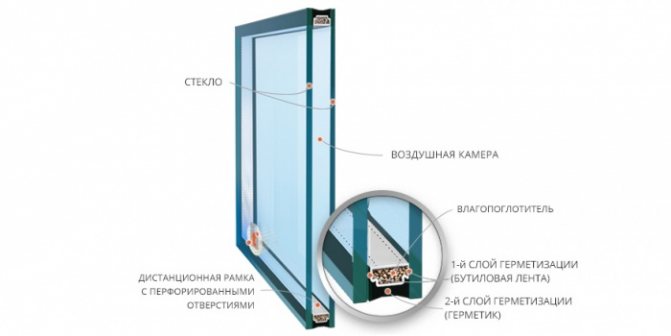 Pour commencer, vous devez comprendre qu'une fenêtre à double vitrage n'est pas une fenêtre entière, comme beaucoup le croient, mais seulement un remplissage en verre transparent. Il se compose de 2 ou 3 feuilles de verre, pré-assemblées à l'aide de mastics à haute résistance. Pour former une chambre à air entre les verres, qui agira en outre comme un isolant thermique et fournira une protection contre le froid, un cadre d'espacement en aluminium est utilisé. Il y a de l'air séché ou du gaz inerte à l'intérieur des chambres, de sorte que lorsque la température change, la condensation ne se forme pas sur les verres. Pour maintenir l'étanchéité, les vitrages isolants sont traités avec un scellant autour du périmètre.