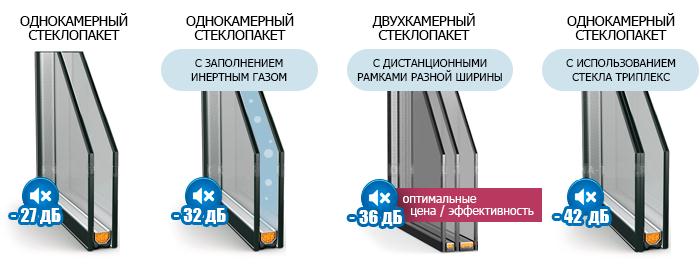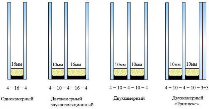 Le verre peut avoir une largeur de 4 ou 6 mm - plus il est épais, meilleure est la protection contre le bruit. Le grade M1 correspond à des verres de haute qualité, M2 et M3 - des verres de qualité inférieure. La marque «I» indique que le verre est économe en énergie.