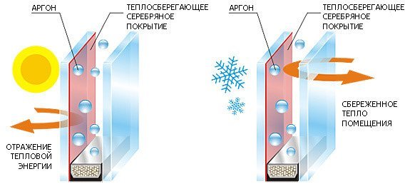 Les surfaces des verres à l'intérieur des chambres, avant même d'être assemblées dans des emballages, sont revêtues d'une couche de pulvérisation spéciale avec des ions d'argent ou d'oxydes d'indium et d'étain. La technologie d'un revêtement à deux couches d'argent et de titane est également utilisée. Selon le type de pulvérisation sur les fenêtres, les caractéristiques techniques de la résistance de surface aux influences chimiques et physiques diffèrent.
