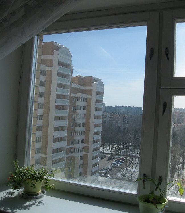 | Double vitrage: 4-16-4i. Avec une translucidité d'environ 90%, ils offrent très peu de gradation. À gauche sur la photo - une vue à travers une porte de balcon ouverte, à droite - à travers une fenêtre à double vitrage. |