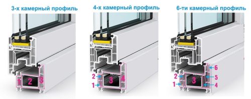 Il existe deux ensembles de caméras dans la structure de la fenêtre. L'une est une fenêtre à double vitrage, qui est discutée ci-dessus. Le second est le profil lui-même. Le profil est creux. Il y a des cloisons à l'intérieur du profil pour créer la résistance de la structure, fixer les raccords et augmenter le niveau d'isolation thermique et phonique. Les volumes creux créés par eux sont appelés chambres. Plus il y en a, meilleures sont les performances de la fenêtre. L'emplacement des cavaliers est calculé mathématiquement - chacun d'eux remplit une fonction spécifique.