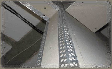 Les coins des pistes sont fermés avec des coins perforés - Les coins sont finis avec du mastic et laissés à sécher complètement;