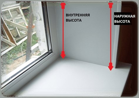 - À l'ouverture de la fenêtre d'en haut, mesurez la largeur et la profondeur. Sur les côtés, la hauteur est mesurée deux fois - à la fenêtre et au mur;
