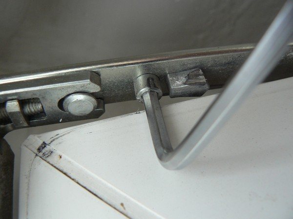 Si le problème avec la poignée provient d'une force de serrage excessive, relâchez-la. Pour cela, les excentriques sont ajustés à l'extrémité du châssis du côté de la poignée, et les boulons sur les charnières sont également ajustés.