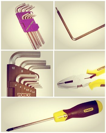 - une clé hexagonale en forme de L dans la plupart des cas de 4 mm;