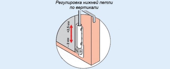 - le désalignement est éliminé en tournant les vis des charnières du milieu et du haut;
