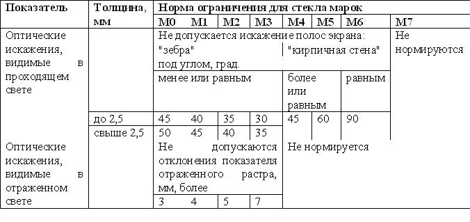 GOST 111-2001 Verre à vitre, clause 5.1.1, tableau 4 Les défauts et les distorsions optiques affectent la transmission de la lumière. Il est permis d'utiliser du verre dans les fenêtres de M0 à M7. Dans le même temps, le verre recommandé du point de vue du minimum de défauts est M0 (qui est rarement recyclé par quiconque) et M1 (que l'on retrouve beaucoup plus souvent).