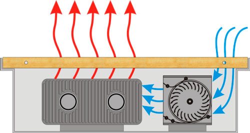Le convecteur peut être équipé d'un élément supplémentaire - un ventilateur tangentiel, qui augmente considérablement la vitesse de circulation de l'air, bien que les modèles sans celui-ci aient également un rendement assez élevé, mais ne créent pas de bruit supplémentaire dans la pièce pendant le fonctionnement. L'utilisation de dispositifs à convection forcée est justifiée dans les pièces de grande surface et, en particulier, avec de hauts plafonds, car dans le second cas, les masses d'air chaud augmenteront à un niveau dépassant la hauteur d'une personne, par conséquent, une circulation d'air accélérée sera être obligé de créer des conditions confortables dans le lieu où les gens séjournent.
