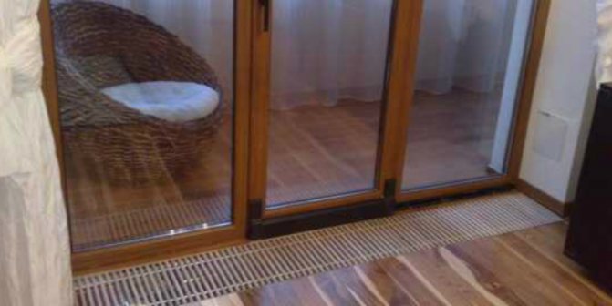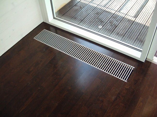Les convecteurs encastrés dans le sol font un excellent travail avec les salles de chauffage avec vitrage panoramique, et sont indispensables pour les loggias fermées et les balcons. Leur utilisation est également pertinente près des portes donnant directement sur la rue, les terrasses ou les jardins d'hiver - cette disposition permet de créer un rideau thermique. Dans un but similaire, ainsi que pour résoudre le problème de la condensation, des convecteurs peuvent être intégrés dans les appuis de fenêtre.