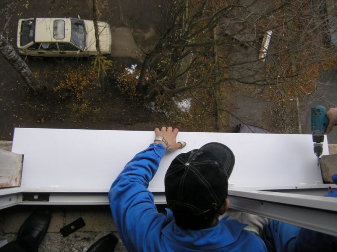 Parallèlement au rebord de la fenêtre, le reflux est en cours d'installation. Il est inséré dans une niche sous le cadre principal et vissé sur le rebord de la fenêtre. En conséquence, une protection supplémentaire est créée contre la pénétration d'humidité extérieure dans la pièce.